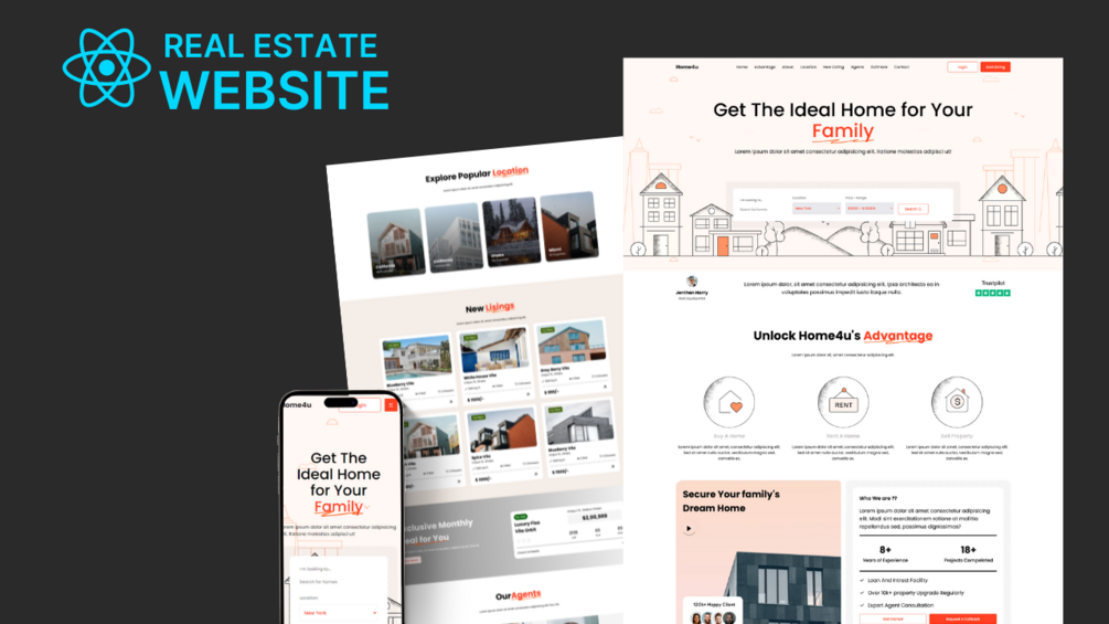 Get an amazing website template for Real Estate Website in React with resources and source code. React Is one of the most power full frontend JavaScript Library to create modern web design or application with ease. So lets get now and be our member for more interesting assets and tutorial links.